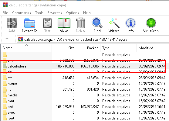 Acesse a pasta Calculadora, dentro dela abra a pasta calculadora.tar.