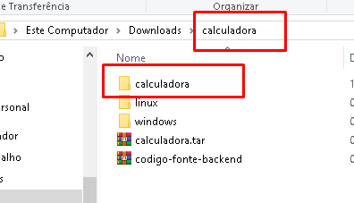 Após o procedimento, haverá uma pasta calculadora dentro de outra pasta Calculadora, conforme a imagem abaixo.