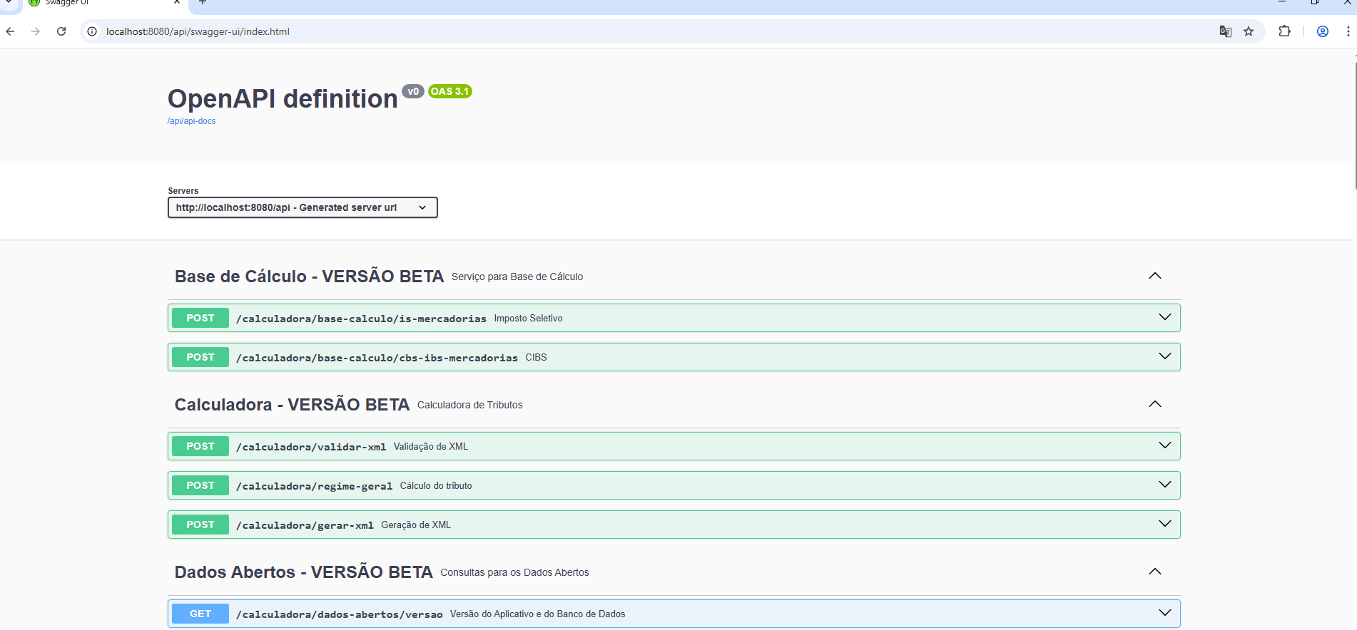 | Componente / Calculadora off-line (local) | Empresas de software, empresas que usam ERP, contadores ou setores fiscais que preferem operar localmente ou integrar ao sistema interno | Você baixa uma versão que roda no seu ambiente local, podendo ser integrada via API REST ao SGE. Garante autonomia, sigilo, execução sem depender da internet. |