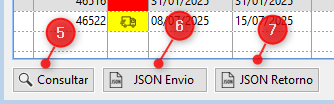 Para consultar os dados, sem precisar fazer uma nova simulação, pode ser usado o botão "Consultar" (item 5) e para verificar o JSON de envio (item 6) ou de retorno (Item7), pode ser usado o botão "JSON Envio" e "JSON Retorno". O layout tanto de envio quando de retorno é de fácil entendimento.