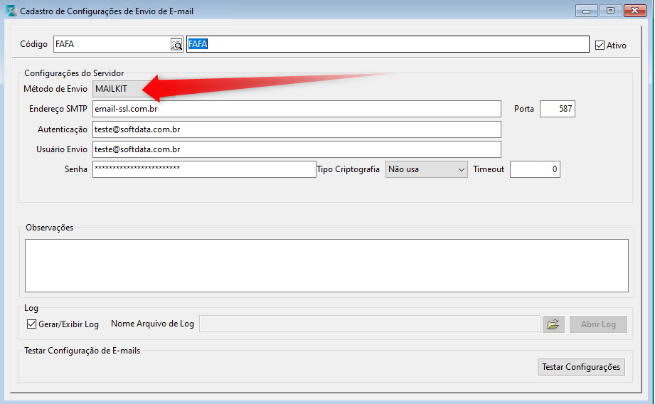 Lembre de selecionar a opção destacada acima e também substituir os dados de SMTP pelo seu servidor.